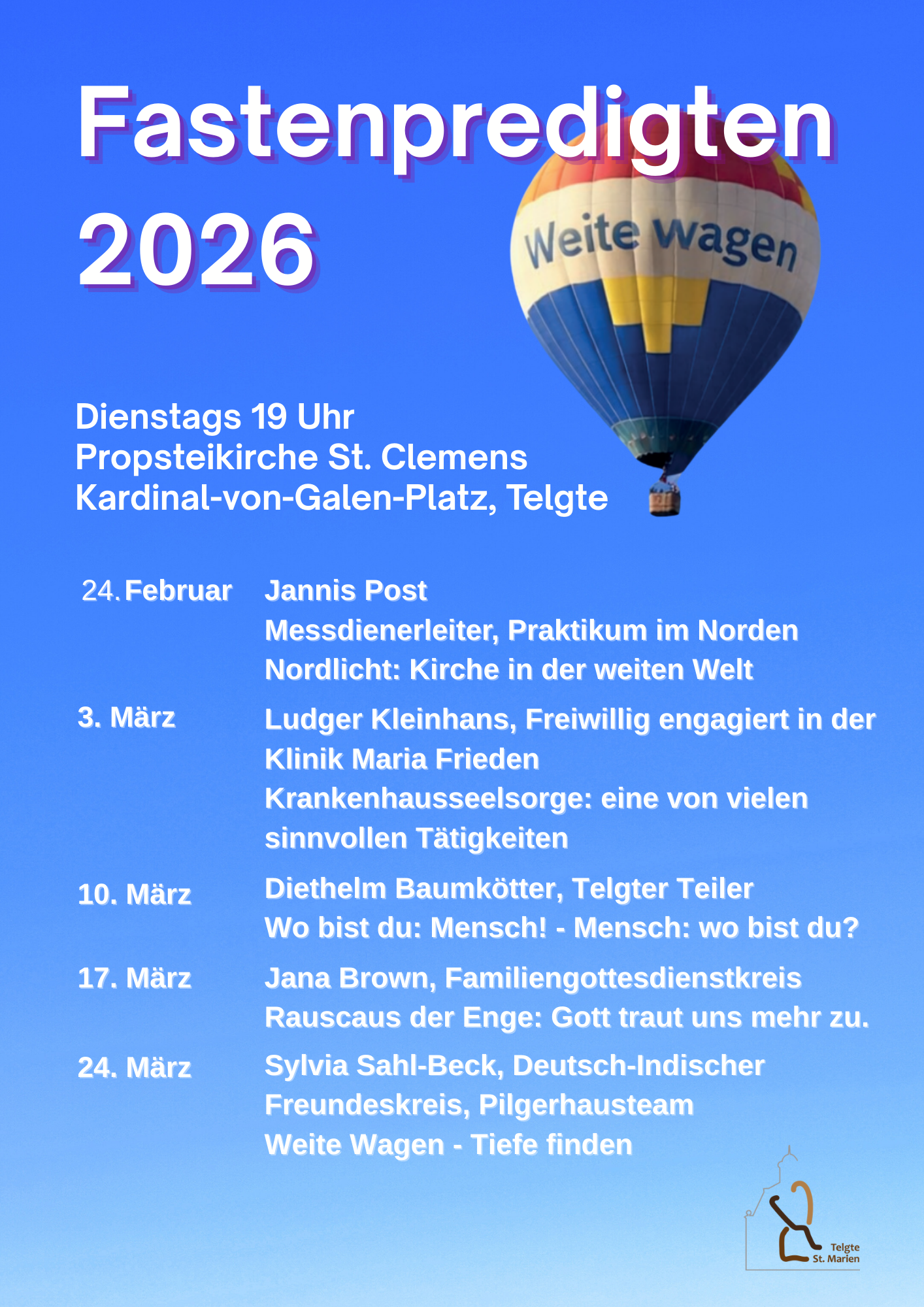 Die österliche Bußzeit will eine Zeit der inneren Neuausrichtung für uns Christen sein. Deshalb liegt in allen Kirchen und kirchlichen Gebäuden ein Faltblatt aus, das verschiedene geistliche Angebote unserer Kirchengemeinde St. Marien zur diesjährigen Fastenzeit thematisch vorstellt.