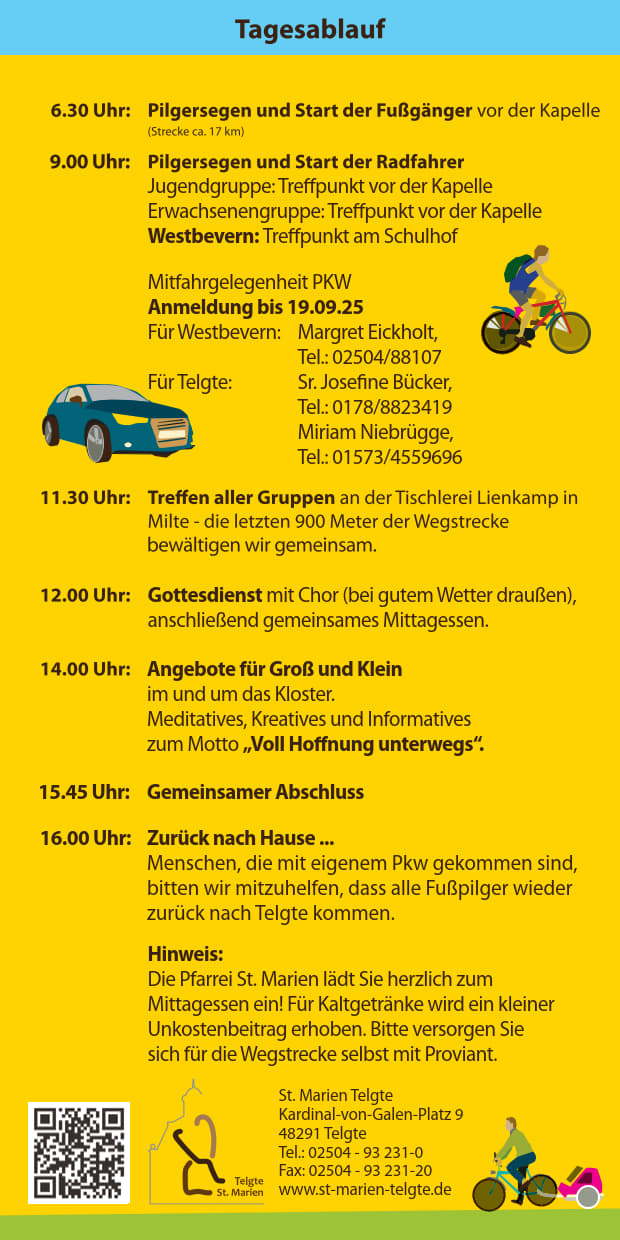 Gemeinsame Abfahrt: per Rad um 13:30 Uhr an der Gnadenkapelle in Telgte (Kardinal von Galen Platz).